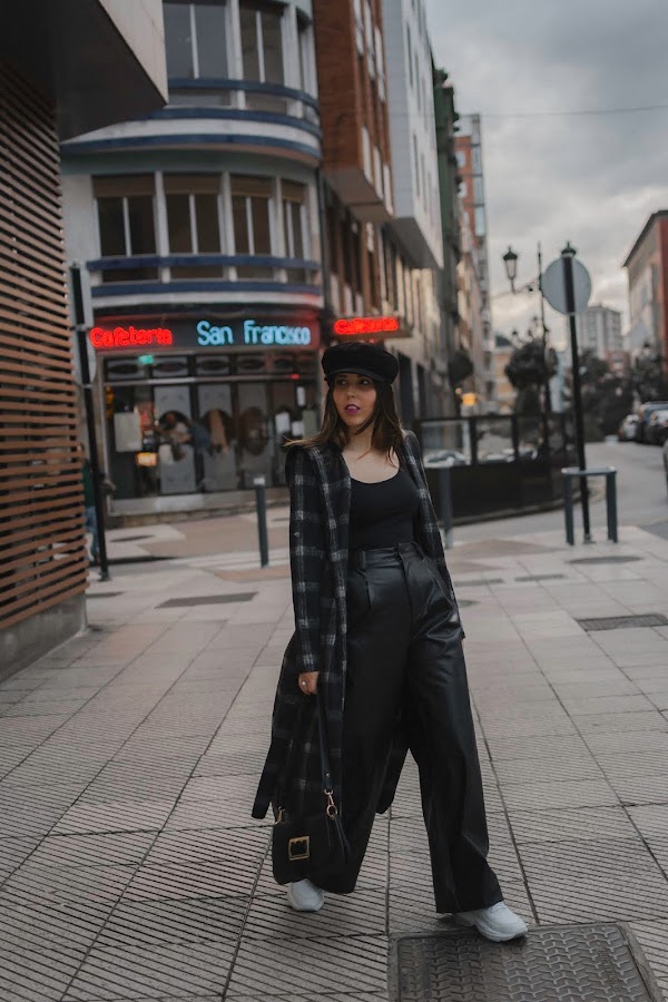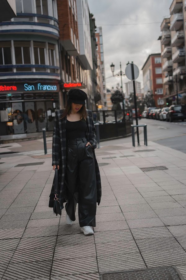 Lo combiné con un sencillo top en color negro, unas deportivas blancas y un pequeño bolso negro con detalles dorados. Sumarle la gorra como complemento estrella, no me pareció recargado, me encanta porque le da otro rollo al look añadiéndole estilo. Y por último, otra de mis prendas favoritas, el pantalón de cuero palazzo de cintura alta. El cuero y los pantalones anchos, son tendencia esta temporada, por lo que encontrar ambas cosas en una sola prenda ¡es genial! Los pantalones son de SheIn y podéis comprarlos en su tienda online con un 15% de descuento extra con mi código "brunette15" ¡lo mejor de todo es que el código vale para lo que queráis comprar en la web! Todo lo que os guste, tendrá un descuento extra.