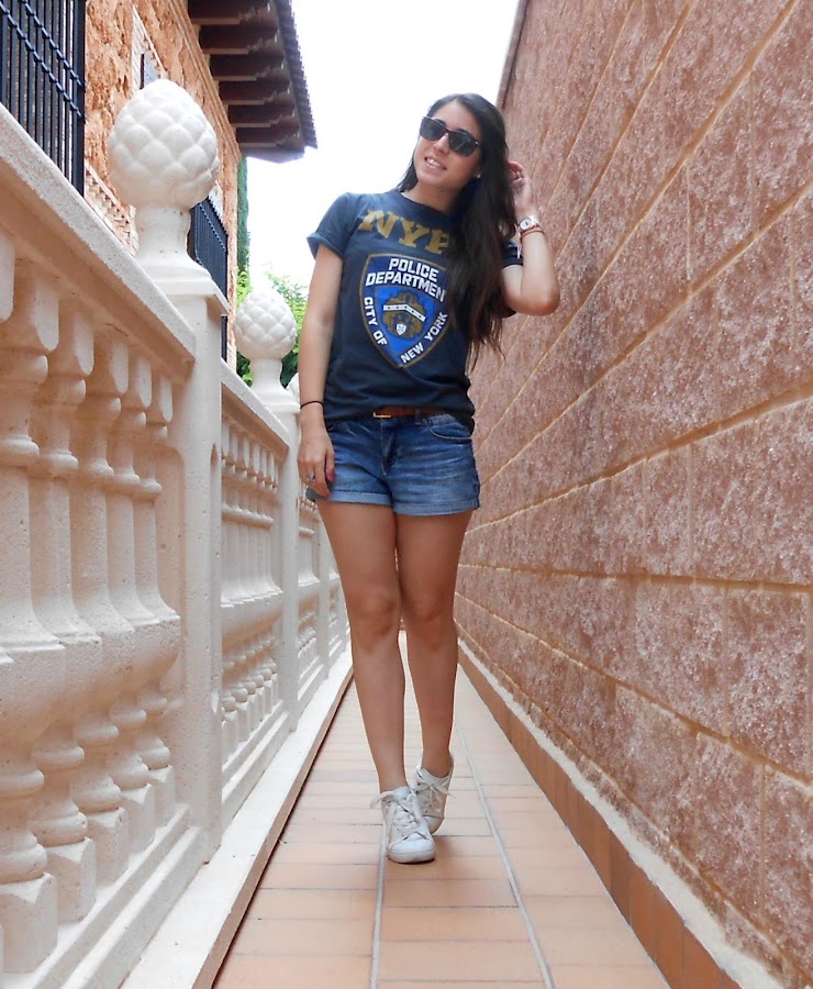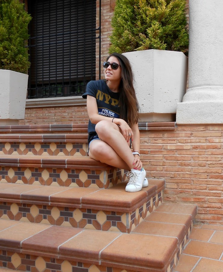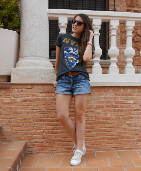 Me decanté por unos "shorts", camiseta y zapatillas blancas, un "must" para este verano. ¿Qué os parece?