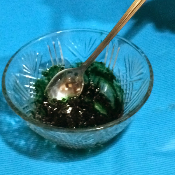 En caso de disponer del alga en comprimido, deshacer hasta que quede en polvo.