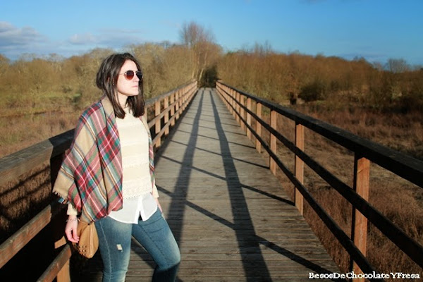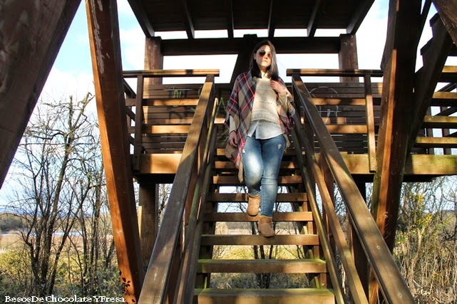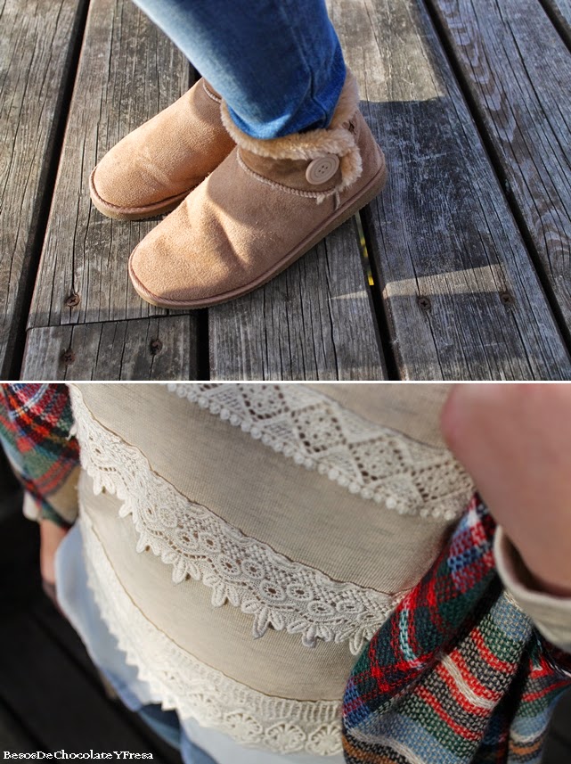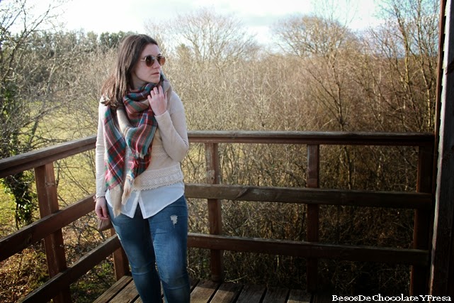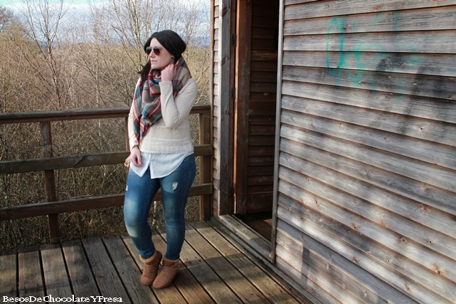 Hacía bastante frío y viento de ahí que algunas fotos no fuese capaz de dominar mi pelo jejeje. Llevo mis nuevas botas nude tipo ugg con jeans, sweater también nude con crochet y camisa blanca por debajo, bufamanta y bolso tipo sobre.