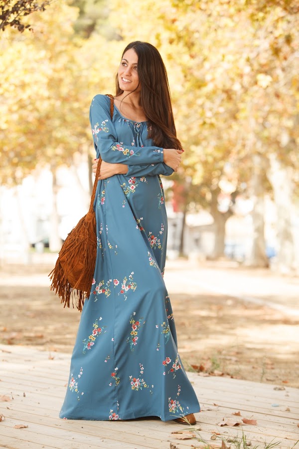 Hoy os presento un look de entretiempo de aire boho con un maravilloso maxivestido de manga larga de TONALÁ. La verdad es que me encantó nada más verlo tanto por la caída, como por el estampado y su agradable tejido. Además ya sabéis que me pierden los vestidos largos... :)