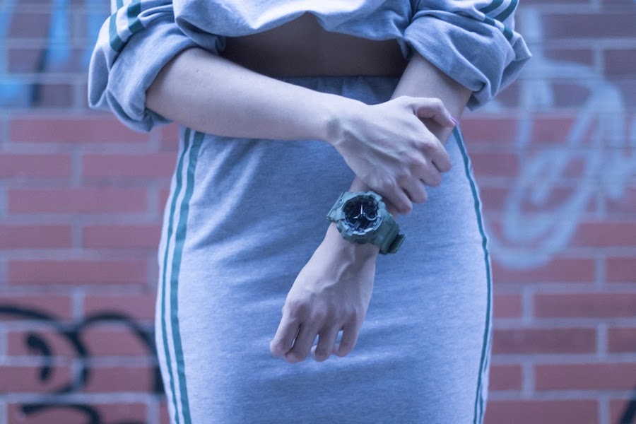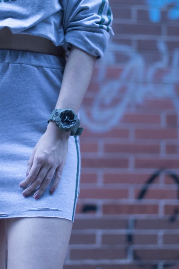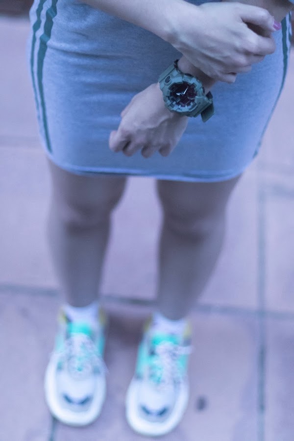 Y hoy toca otro conjuntito de SHEIN de dos piezas de estilo deportivo, pero esta vez se trata de una falda y una maxi sudadera! De color gris con rayas laterales verdes y estampado de letras también en color verde.