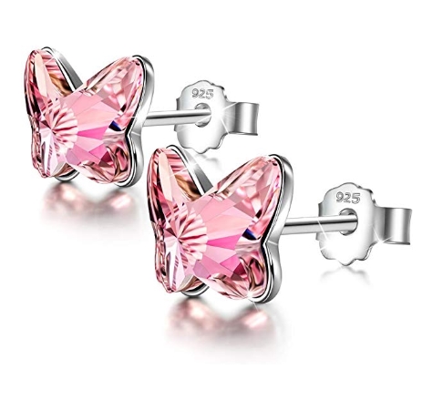 Pendientes con forma de mariposa, de plata y cristales Swarovski, marca Angel Nina, aquí. Bajan de 99,99 € a 12,99 €.
