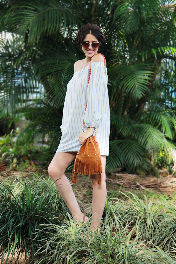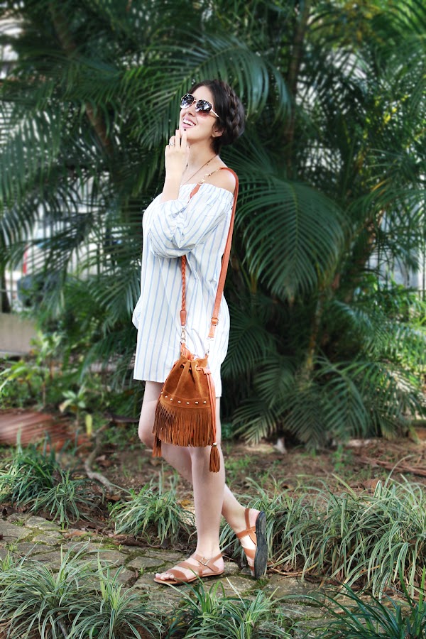 Este vestido estilo pijama me encanta, es súper cómodo y perfecto para días calurosos. Decidí usarlo de manera muy simple para darle todo el protagonismo a esta prenda, sandalias básicas, un bolso de flecos en tonos tierra, colar largo. lentes para el calor y por supuesto un peinado que contraste con todo el estilo. Estas trenzas las aprendí a hacer hace poco y se ha vuelto uno de mis looks favoritos para los días en donde el sol no me deja vivir jajaja.