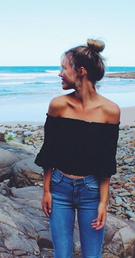 Las blusas con raya diplomática con hombros fuera, quedan ideales con denim.