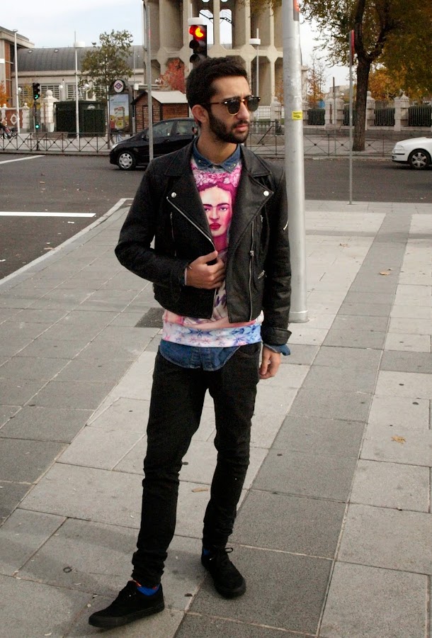 Como sabéis soy muy fan de las prendas con historia o imágenes artísticas. Y en este caso combine esta sudadera (que es una de mis favoritas) con una Jacket de cuero de color negro, unos jeans pitillo y unas vans oscuras.