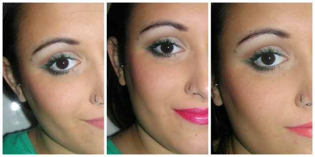 Yo he elegido el verde porque creo que le sienta muy bien a los ojos marrones y es un color que me encanta. En los labios he decidido probar tres colores diferentes, aun que se podrían poner miles de colores más. Espero que os guste y os dejo con el paso a paso y las fotos :)