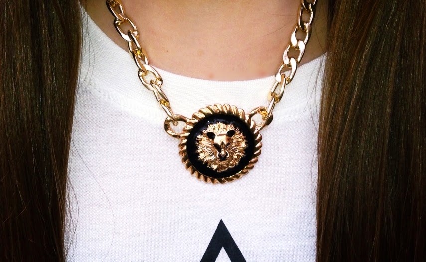Me dieron un tarjeta de regalo y elegí la camiseta que os enseño en el outfit de hoy que me encanta, el collar de león que también os enseño (creo que hay uno muy similar en Oasap) y una blusa que utilizaré mucho en verano (link) y la cual ya os enseñaré en otro outfit.