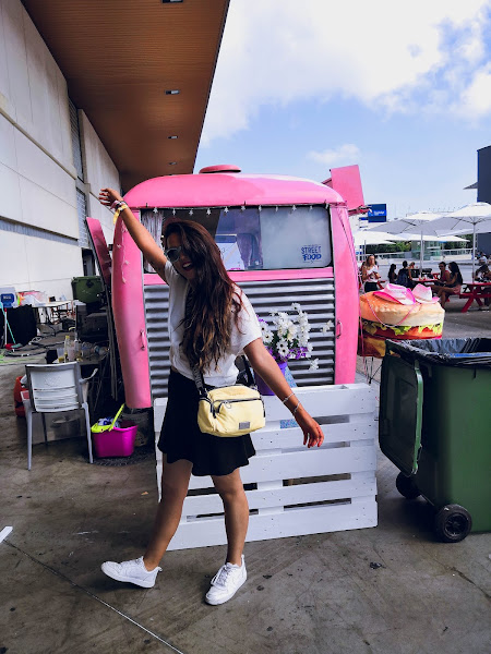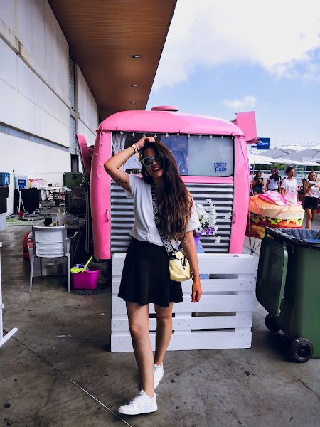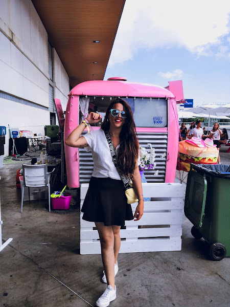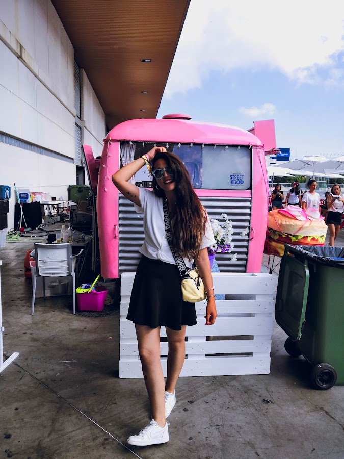 Como siempre, optando por un sporty. Top con nudo de Zara, falda de Stradivarius-más que usada ya- y la clave del viaje: sneakers nike. Que comodidad. El toque chic ya sabéis que complemento lo da ¿no? el bolso de Bimba Y Lola. Por desgracia no era mío. Algún día se lo robaré a la dueña.