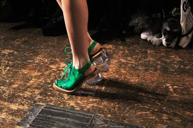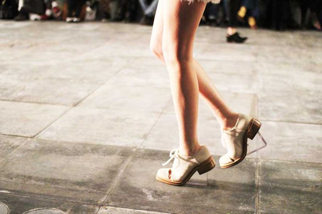Her last four collections have revolved around the same idea ? speaking in shoe terms ?, a not out of ordinary shoe just as oxfords or ballet flats and the mixture of them with colorful polymer plates, creating that way a futuristic halo around them.