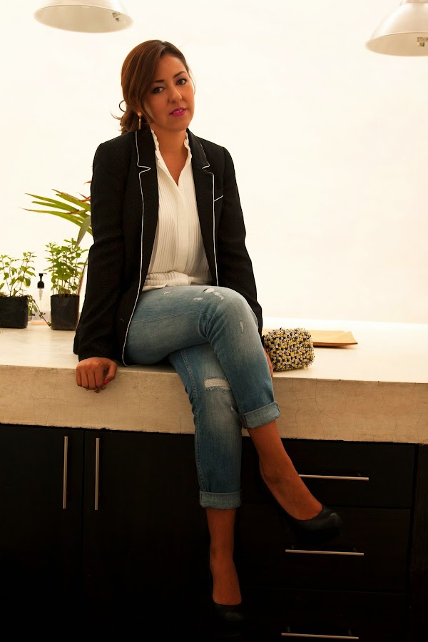 Este look está pensado para esas ocasiones donde nada nos acomoda y queremos tener un look más neutral y simple. La combinación blanco y negro es un clásico y por lo tanto nunca falla, al agregarle los jeans automáticamente se vuelve más relajado, casual y juvenil. Me gustan mucho los blazers o sacos oversize, esto significa que tienen un corte amplio, pero aguas no significa que te compres un blazer cualquiera tres tallas más grande. Este tipo de prenda siempre da un toque masculino por lo que es importante que lo acompañes con detalles muy femeninos como un par de zapatillas, yo además elegí un par de accesorios muy elegantes para crear un contraste interesante.