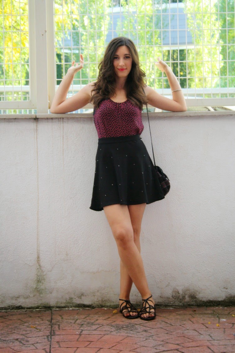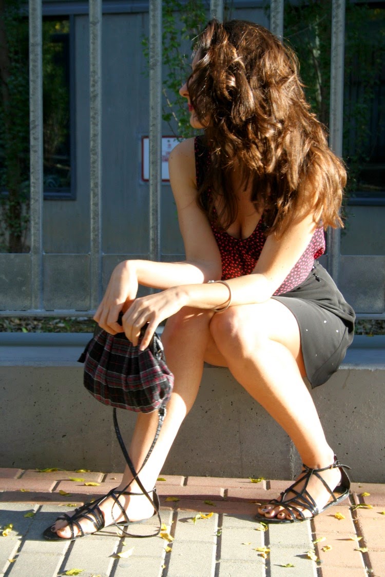 Ya que la temperatura en Granada se niega a bajar (el sábado cuando tomé estas fotos estábamos a 29º) yo aprovecho para seguir llevando ropita de verano, aunque me apetece ir llevando tonos más oscuros y es por eso que saqué a pasear esta faldita que ya me habéis visto en alguna ocasión, y una blusa que me parece preciosa. Me dio hambre cuando no había pasado ni 10 minutos que salí de mi casa así que compramos algunos pastelitos para merendar, no puedo evitar lo golosa que soy!