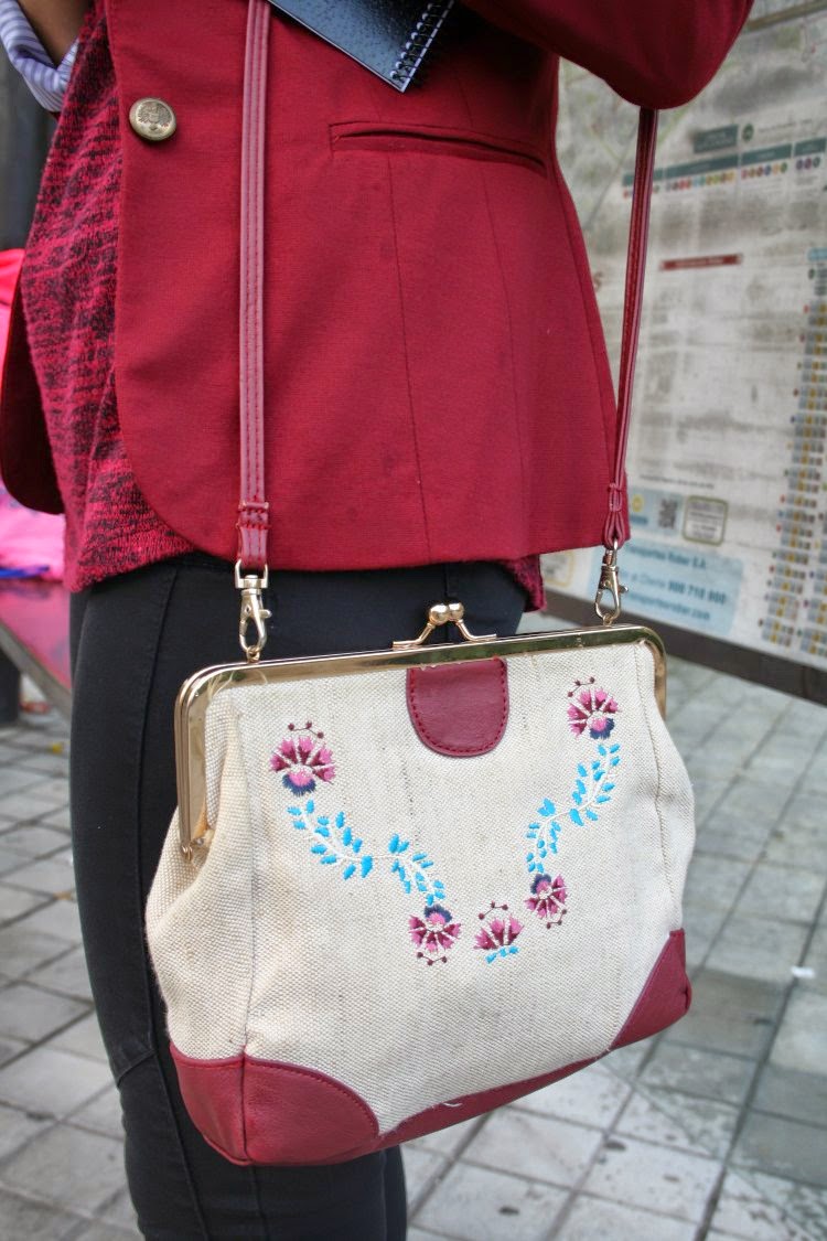 El día estuvo muy feo, lloviendo y con algo de fresquillo, lo cual no fue nada productivo para las fotos, pero algunas pude sacar y este fue el resultado! No sabía muy bien qué ponerme, y no quería parecer muy arreglada así que opté por la formalidad y llevé unos pitillos negros y una americana color granate, un color perfecto para el otoño y que además, pegaba muy bien con la portada de mi trabajo :P