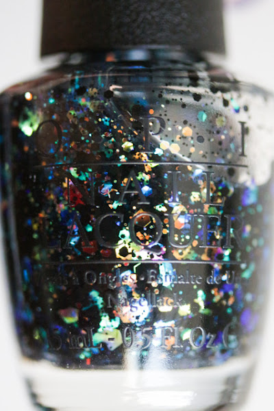 La combinación de glitter negro matte con iridiscente me parece genial y además va con cualquier color de base que quieran usarlo. Cada tanto me quejo de OPI por las colecciones aburridas y el exceso de rojos pero luego sacan esmaltes como estos y me llamo al silencio. Sigan sacando 3 rojos por colección y 1 de estos, yo feliz de la vida.