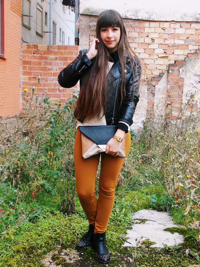 Leggins: Zara // Sweater: Zara // Shirt: Stradivarius // Clutch: Sfera // Boots: Suiteblanco // Biker: H&M