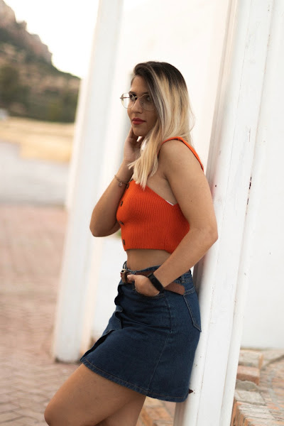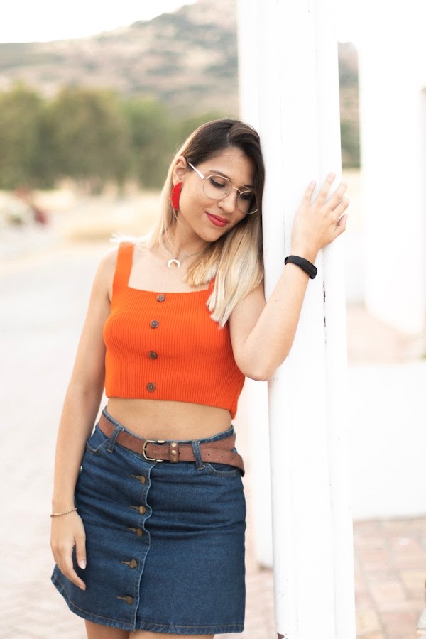 Últimamente estoy obsesionada con el color naranja y es que me encanta este color en verano!! Por eso, elegí este top de IKRUSH! Es súper cómodo y queda de maravilla, con unos botones en la parte delantera.