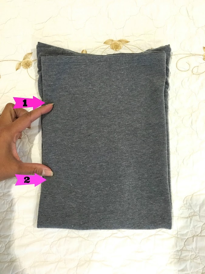 4.- Dobla a la mitad, es decir, lleva el extremo inferior de la camiseta hasta el extremo superior de la misma.