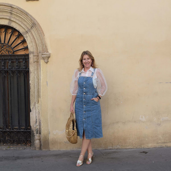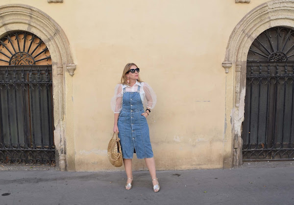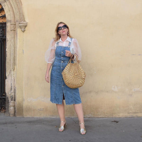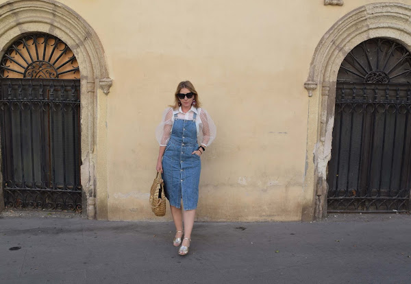 Yo lo he combinado con vaquero, en este caso una falda-peto, para así compensar tejidos tan dispares en una combinación que a mi me resulta efectiva.
