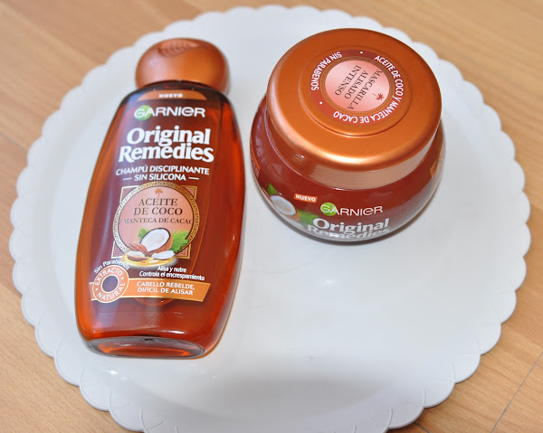 En la entrada de hoy os voy a mostrar la reseña,(que os comenté anteriormente), sobre dos productos de cuidado capilar: champú disciplinante y la mascarilla nutritiva alisadora con aceite de coco y manteca de cacao de la gama original remedies de Garnier.