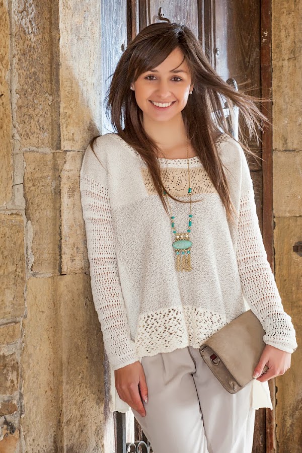 Esta es mí segunda prenda de su marca , la primera fue esta pashmina que ya me habéis podido ver aquí o aquí. Ambas me vuelven loca, el jersey me resulto algo complicado combinarlo ahora, le veo muchas posibilidades pero de cara al verano, al final no me ha disgustado el resultado, además hacía mucho que no sacaba un look en tonos claros.