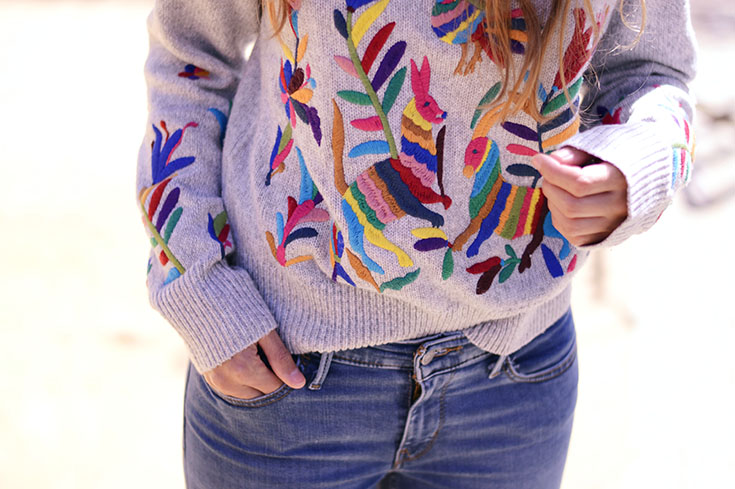 Siempre me ha apasionado México. Tengo muchísimas ganas de visitar el país y conocer su extensa y variada cultura. Y se que, cuando vaya, compraré allí muchísima artesanía textil, porque me encantan los colores y los bordados que utilizan. Pero mientras tanto, creo que tendré que conformarme con este jersey inspirado en los bordados Otomí, del pueblo de México, y que me recuerda tanto a su artesanía. Mil besos