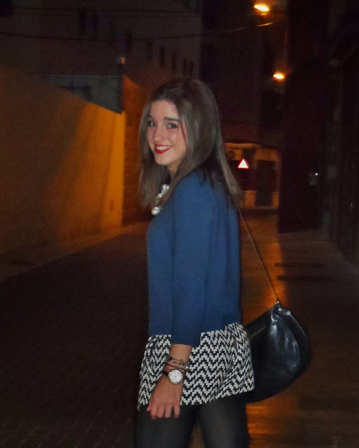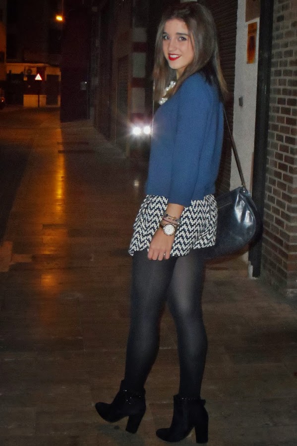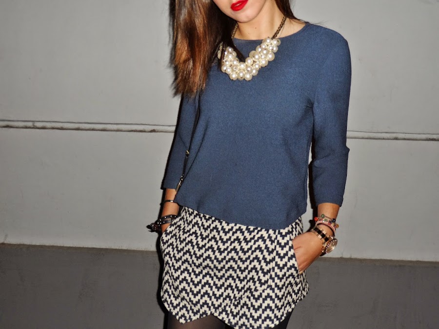 Hoy os traigo una outfit en tonos muy neutros (marinos, sobre todo) como alternativa a los marrones, granates y verdes tan típicos del otoño. Del look, yo destacaría la falda-pantalón, no ya por el estampado (que ya lleva alguna temporada presente en nuestros armarios), si no por ser una prenda que tanto me recuerda a mi infancia. No sé si seré la única pero las "faldas-pantalón" tuvieron una presencia importante en mi armario cuando tenía unos 8-10 años, sobre todo en verano. Y cuando ví que se volvían a llevar, no pude resistirme. Además por lo cómodas que son: puedes ir corta sin tener que estar todo el rato pendiente de que esté todo en su sitio.