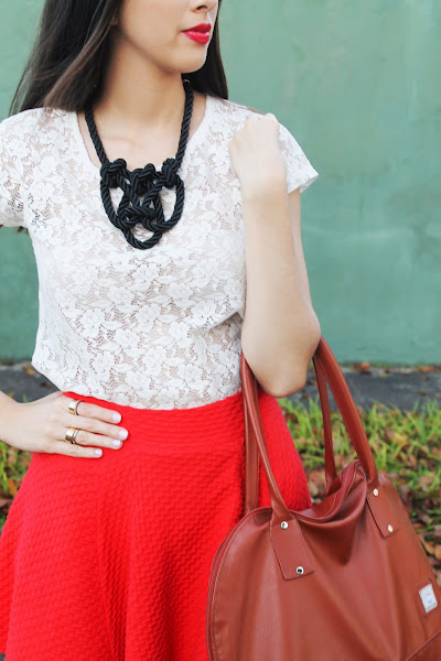 Camisa: Pull and Bear / Flada y anillos: H&M / Zapatos: Charlotte Russe / Cartera: Claudiacreaciones / Collar: Baya
