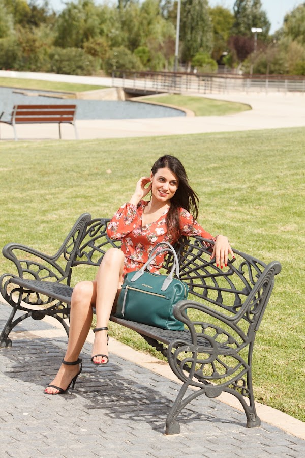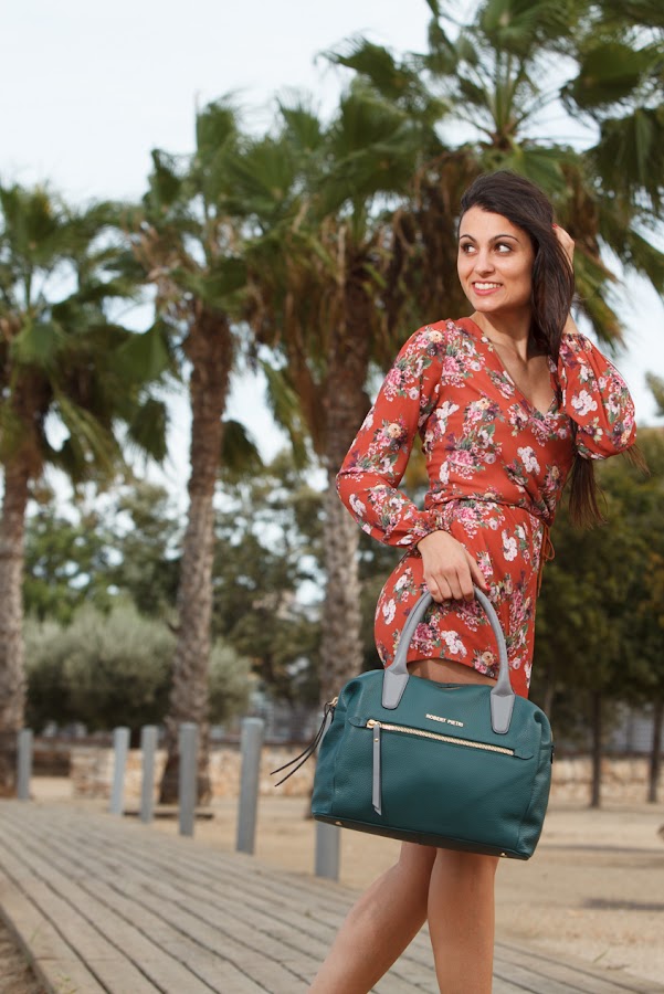 En esta ocasión lo he combinado con mi nuevo bolso ROBERT PIETRI, ¡Repito de nuevo! La calidad y los diseños de estos bolsos de piel, hechos en España, me ha conquistado. Esta vez he apostado por la combinación de verde jade y gris que junto con el juego de colores del estampado del mono me parece que queda genial.