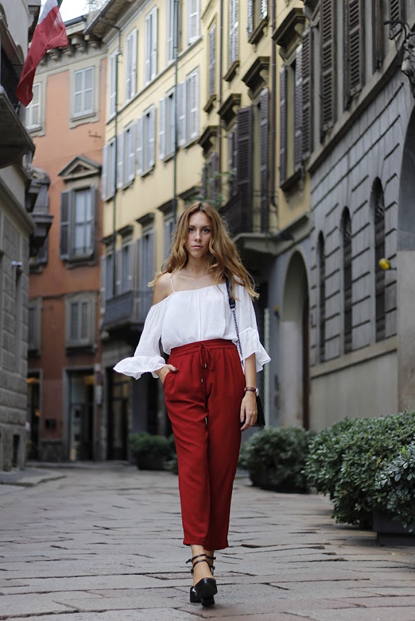 Es extraña la sensación que tengo últimamente: por un lado me apetece muchísimo que llegue el otoño y empezar con el cambio de armario, sacar mis bufandas, mis gorditos de lanas... pero por otro lado, me resisto a cambiar la paleta de colores y que el vestuario se vuelva más serio aunque bien es cierto que determinadas tonalidades son cada vez más aceptadas. Pues aquí me tenéis, con los pantalones ...