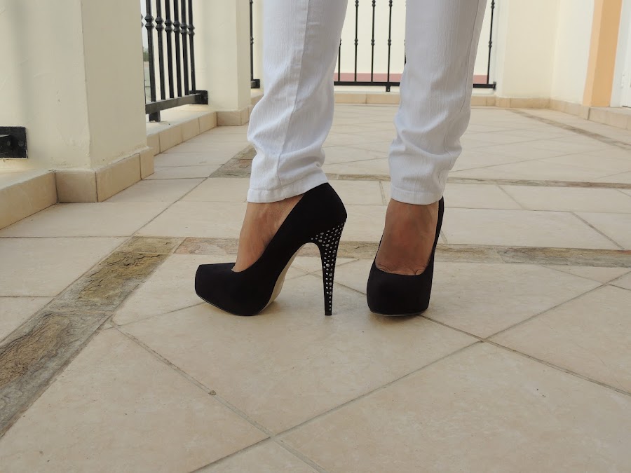 Lo combinamos con unos shorts negros a la cintura , unos tacones de color azul eléctrico también y un bolsito negro estilo clutch para hacerlo un look mas elegante de noche.