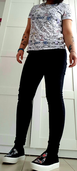 La camiseta es de Bershka de esta temporada, la podéis encontrar AQUI y por solo 5.99 , me gustan mucho de este tipo así anchas y estampadas.