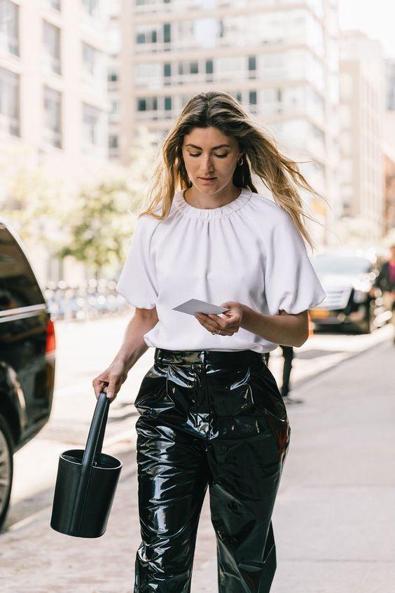 IDEAS DE CÓMO COMBINAR UNOS PANTALONES NEGROS PLASTIFICADOS