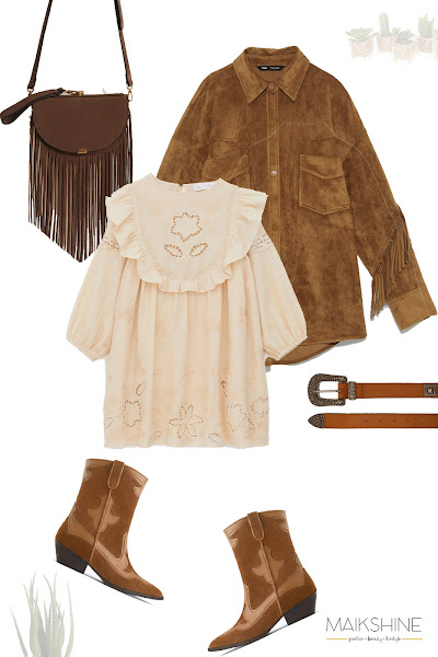 Botas Cowboy: Desde hace varios años, el calzado de estilo cowboy es tendencia y gracias a ello tenemos un montón de variedad en las tiendas: botines y botas con tacón más o menos alto, más o menos ancho, diferentes alturas y anchuras de caña, distintos detalles y acabados... Las posibilidades son infinitas, y eso nos permite crear looks de estilo boho más casuales o más arreglados. ¡Benditas botas cowboy!