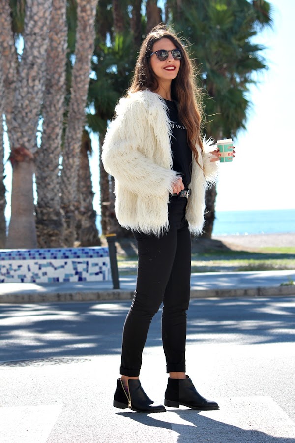 Hola cositas bonitas!!Oficialmente es inviernooo y lo único que me gusta de este tiempo es el chocolate caliente y los abrigos calentitos como el que llevo en estas fotos. Es un abrigo con pelo SINTÉTICO, y lo pongo en mayúsculas porque no hay necesidad de usar prendas o alfombras de pelo natural para ir a la moda. Los hay muchoooo más bonitos de pelo sintético, asique por favor, si estas pensando ...