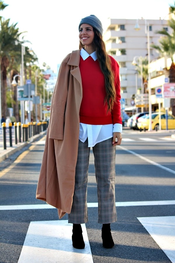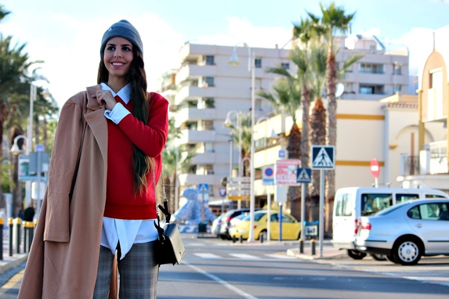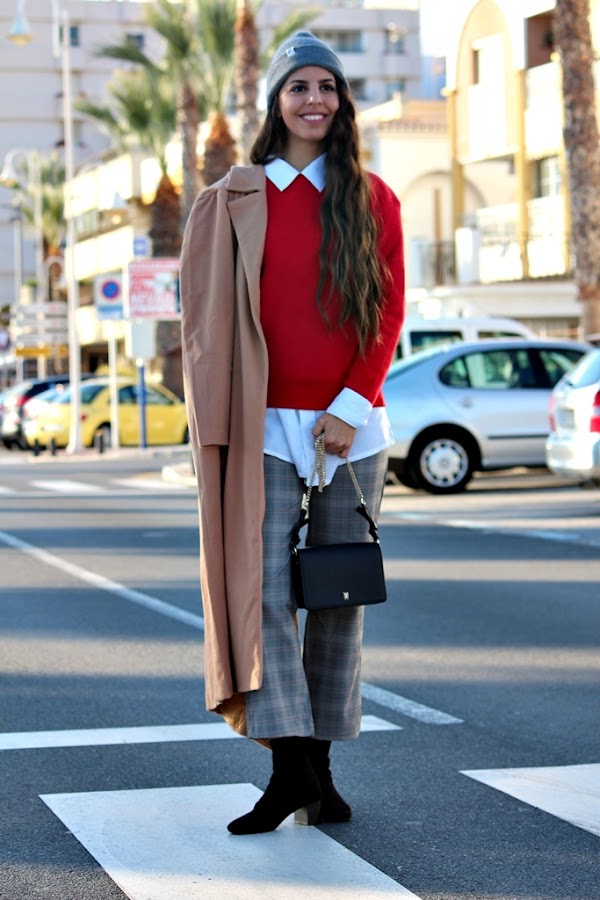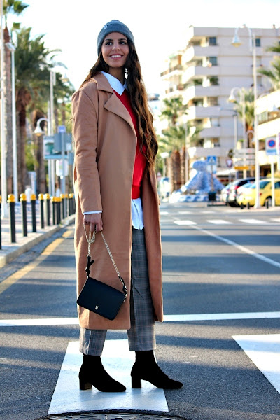 En este look llevo pantalones de Shein. Son de tiro alto, el estampado que tiene me encanta y el acabado es recto. Llevo la S y me queda muy justo para quien use una 36 le recomiendo una M. La sudadera es de Primark tiene pelito por dentro y me cogí la 36 para poder ponerme una camisa debajo y no me quedase muy pegada. La había en un montón de colores y a un precio increible! El abrigo es de Gamiss es un tono camel precioso. Es abierto, de paño y con forro por dentro, no lleva bolsillos y es muy largo. Me encanta como queda en este outfit, le da un toque diferente. Los zapatos son de Mango, tipo calcetín y ya están agotados en la web. El gorro de Pull and Bear y el bolso de Zara.