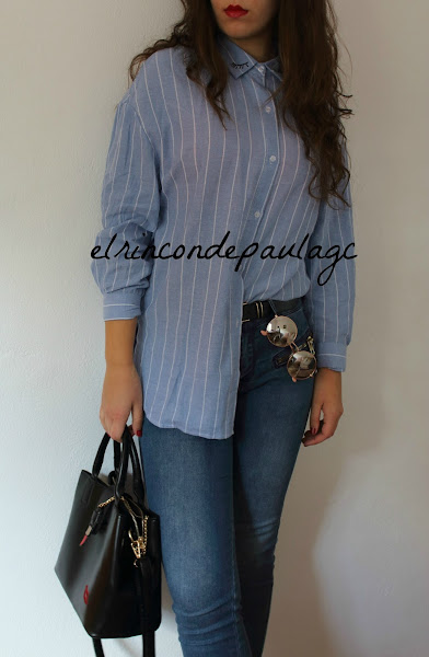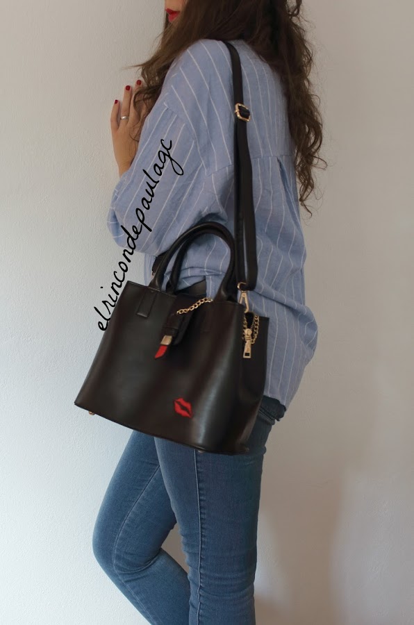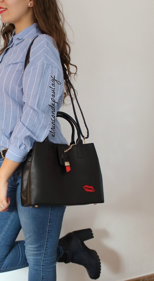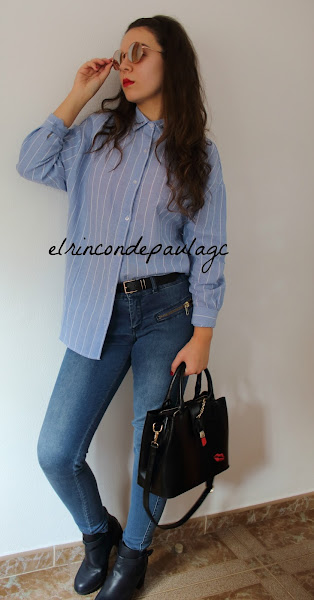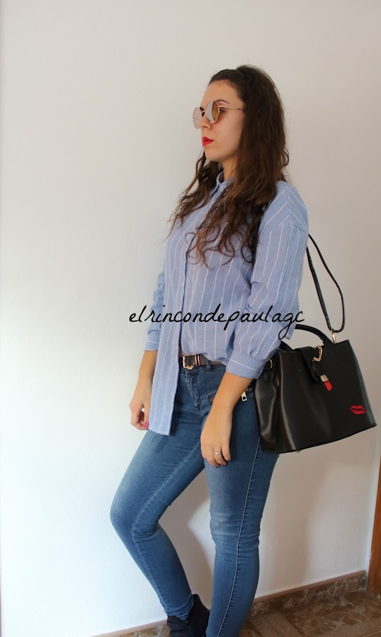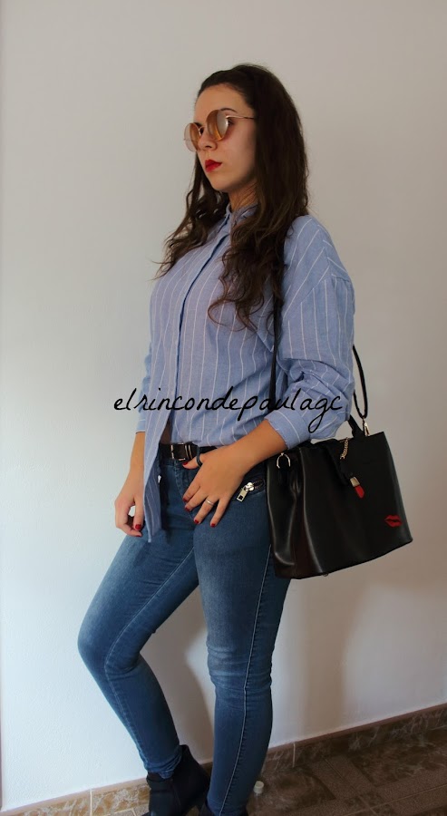 El otro día recibí un paquete de la mano de ZAFUL, y en este caso os traigo un look que he creado con lo que me ha llegado. Me ha llegado está camisa, que me parece preciosa, si no recuerdo mal, creo que es un clon de una de Zara. La calidad es muy buena, me pedí una talla más de la que yo llevo (por si acaso) y he acertado! Por que si me llegase a pedir una menos, creo que me quedaría muy justa. Tiene el detalle de unas pestañas en el cuello y me parece que le da un "rollo diferente" a la típica camisa de botones de siempre. Y por último me he pedido este bolso que me tiene enamorada por completo! Creo que es uno de mis favoritos de este año, no solo por el bolso en si, si no en el color, los detalles, el tamaño... Al principio me parecía un poco pequeño, pero quieras o no, mejor un bolsito tamaño medio, que así te adaptas y no metes muchas cosas, a uno gigante que metes hasta el portátil y te pesa un montón. Cuando lo vi en la web, tenía que ser mío si o sí. La única pega que le pongo, es que es un poco caro.
