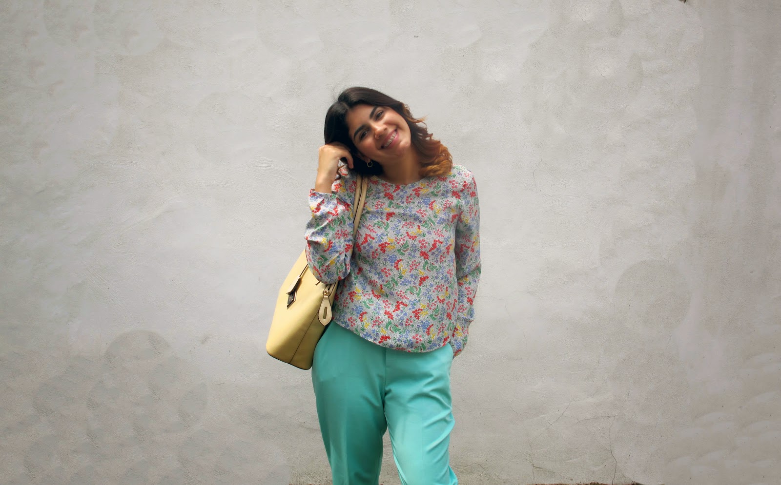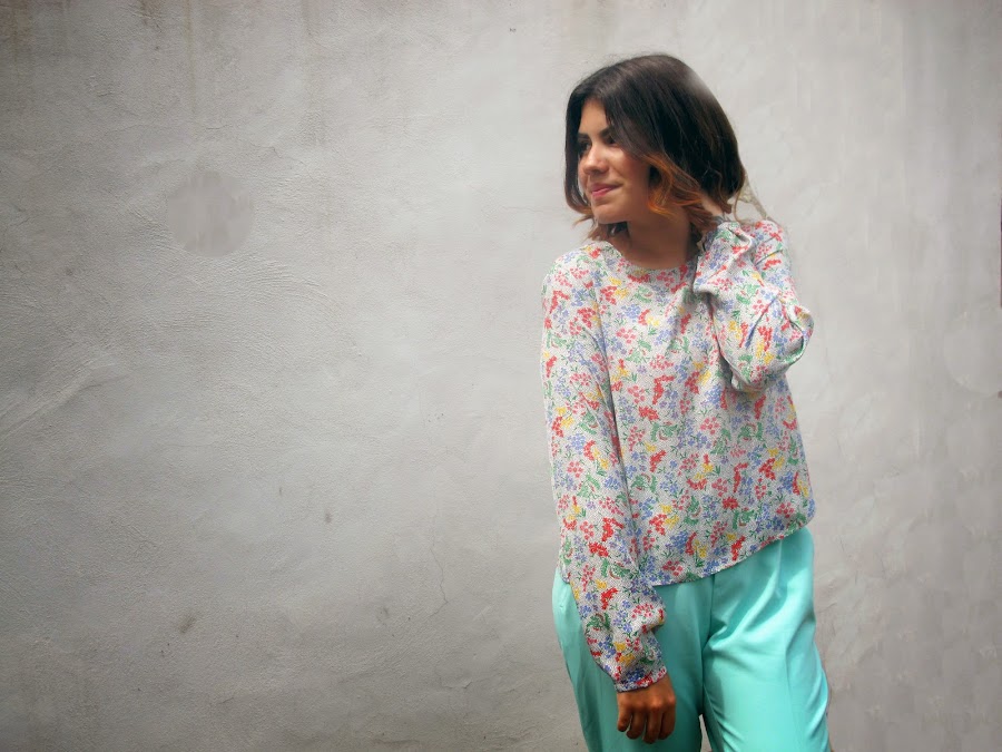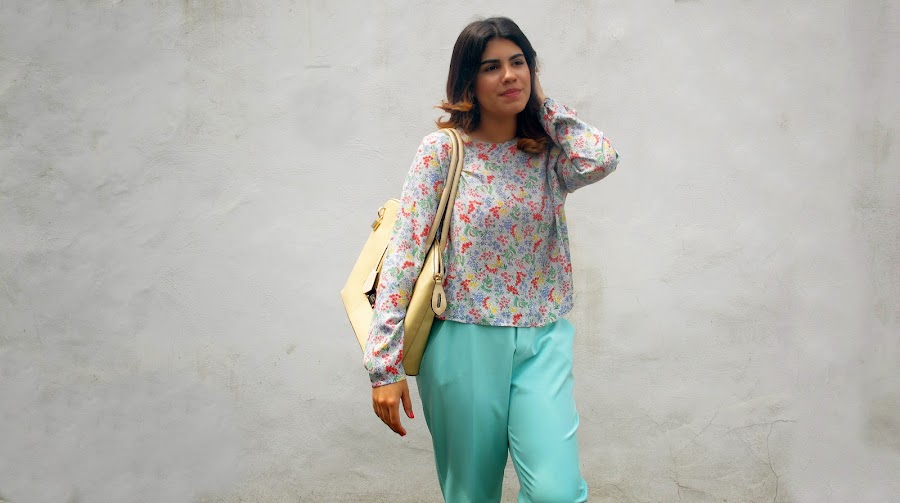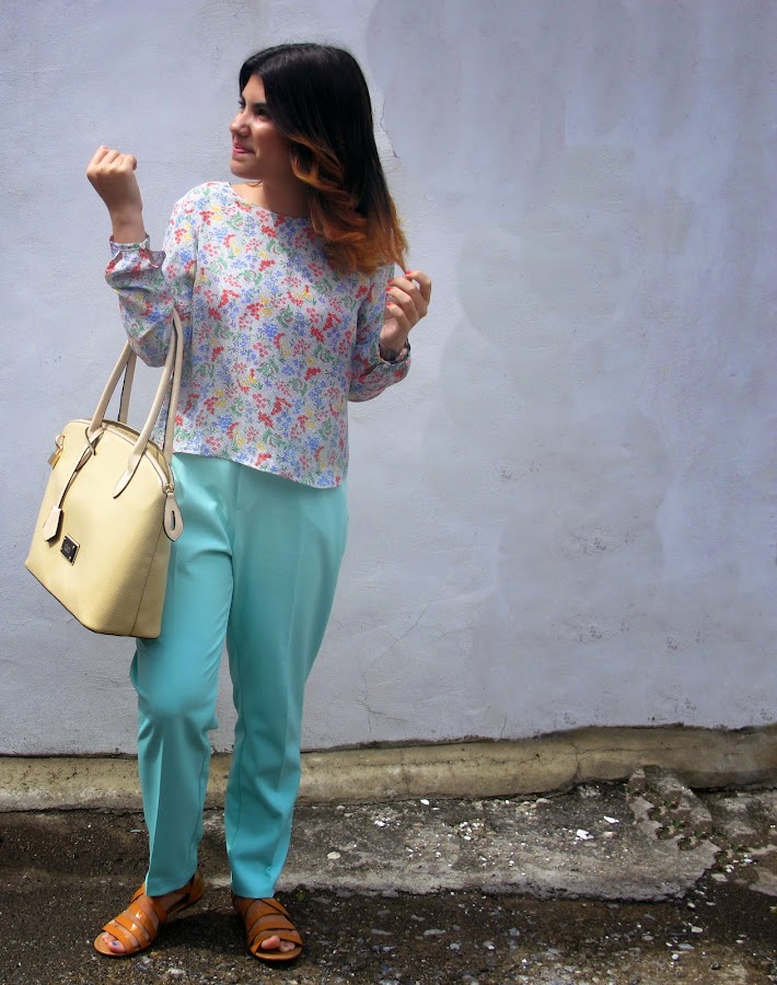 Una camisa suelta con un estilo un poco crop top y unos pantalones altos en tela muy suave hacen el balance ideal para un día de verano muy caluroso , los colores y los entrampados que use son una mezcla entre los colores de la primavera y los colores del verano . Lo mejor y más seguros para usar estos colores es complementarlos con colores nude o piel para mantener un estilo sofisticado y algo sobrio. Este outfit simplemente de encanta!