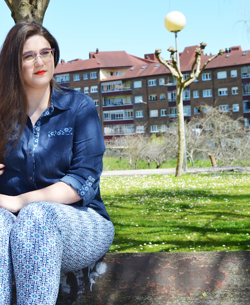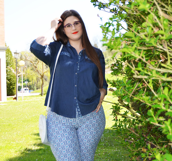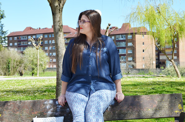 En esta ocasión, el día estaba algo gris, por lo que la opción de algo ligero y sandalias... realmente no estaba en mis planes. Por lo que al contrario, decidí sacar mi blusa vaquera, que realmente no es de tela vaquera. Y los botines para ir bien cómoda, para un largo día.