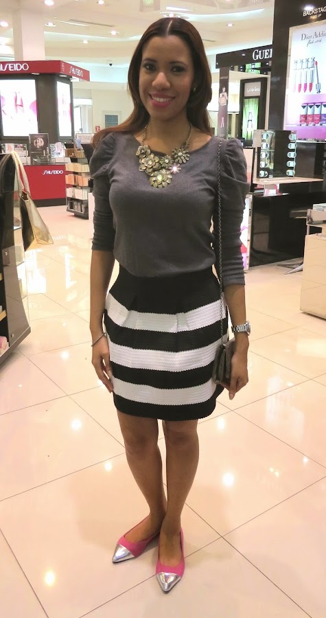 Hoy les traigo un nuevo outfit, en el cual la protagonista es esta falda de rayas blancas y negras, que tanto esta de moda. Este outfit lo utilicé para la fiesta de Aniversario de la Marca Kiehl"s en Panamá