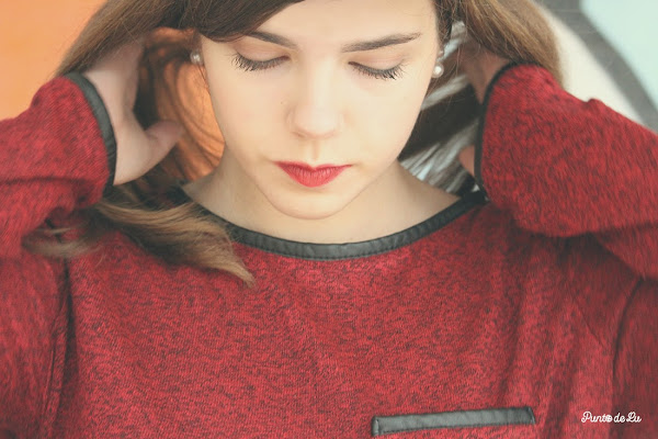 El tejido de punto fino es ideal para confeccionar camisetas como ésta y, el hecho de que sea rojo jaspeado en negro, hace que no necesite de muchos detalles para lucir bien. Tanto es así, que el único adorno que le he puesto es un bolsillo en el pecho cuyo remate superior es de piel.
