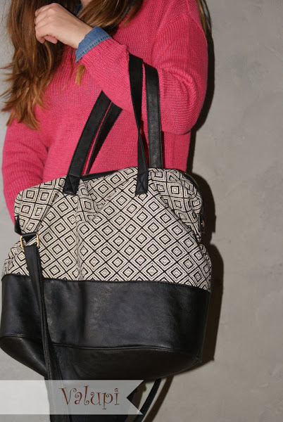 Como este look es sin estampados, hemos utilizado un bolso con estampado étnico en blanco y negro para no quitar el protagonismo del jersey y la camisa.