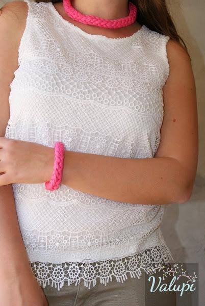 Un collar con su pulsera a conjunto de trapillo como Le Galon de Valupi es la mejor opción para estos días que queremos dar un toque de color a nuestro outfit.