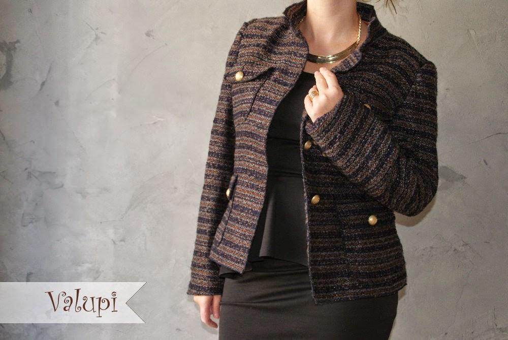 Vayamos donde vayamos a celebrar la entrada del año nuevo seguro que necesitamos una chaqueta, y esta con los botones en dorado nos combina a la perfección con los complementos escogidos.