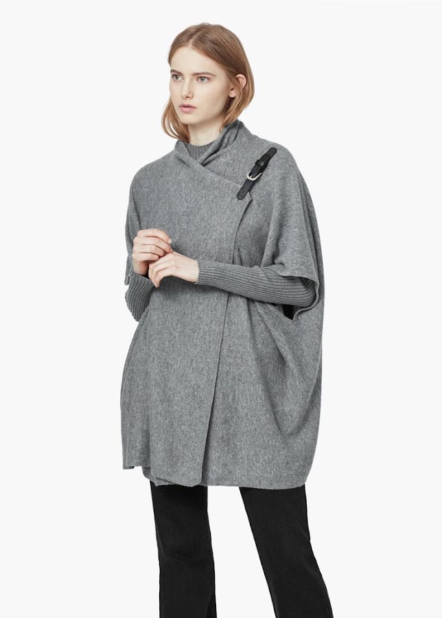 Un modelo muy elegante es este que os traemos de Mango, un pocho cerrado por una hebilla en la parte superior. Y es una idea que podemos adaptar a algún poncho o cardigan que tengamos en casa, así podemos renovarlo y darle una segunda oportunidad ;).