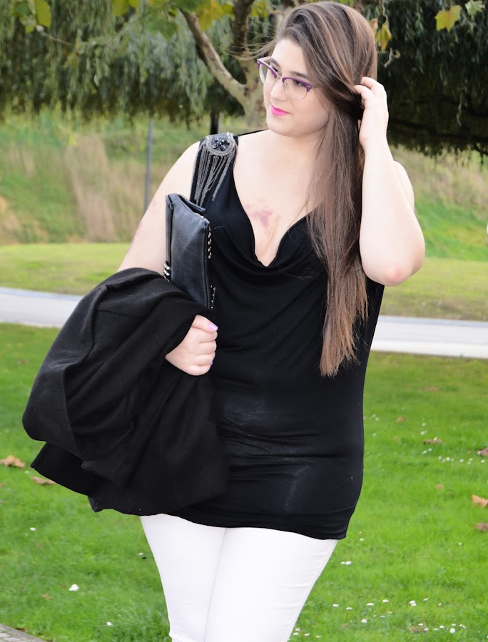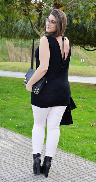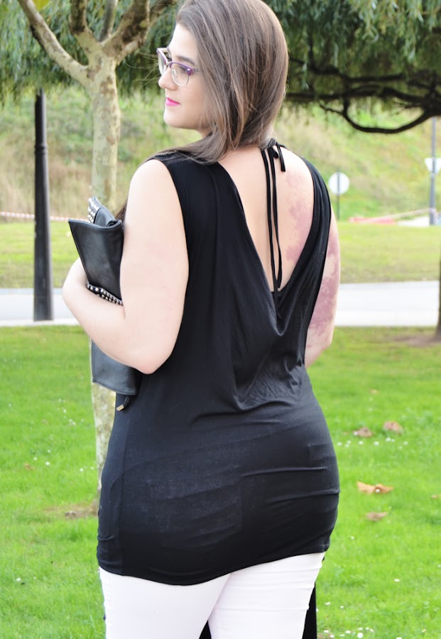 Hoy vengo con un nuevo outfit, y todo lo que escribí anteriormente lo digo por una cosa en concreto. Muchas ya lo sabéis, pero algo que me acomplejo durante muchos años de mi vida, fueron las manchas que cubren la parte derecha de mi cuerpo. Espalda, pecho y brazo. En algunas imágenes a lo largo de estos años en el Blog, habéis tenido pequeños indicios de lo que eran. Y muchas me habéis preguntado por ello, y a mi no me importa en absoluto responder. Pero hoy justamente, se ven mas en toda su gloria debido a la espalda abierta y a que la camiseta es de tirantes. Se trata de manchas de nacimiento. Nací con ellas, ni me duelen ni se notan al tacto pero ahí están resaltando toda mi piel pálida!