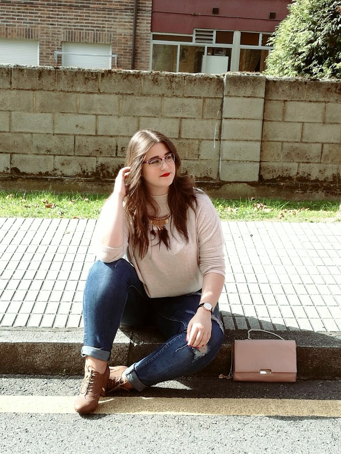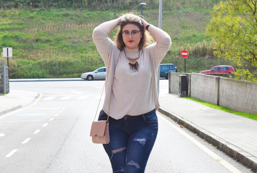 Tan suave y amoroso. Oversize. Me encanto, y su tono beige, lo hace perfecto para combinarlo con facilidad, cualquier día si nos levantamos con el día torcido. Por otro lado, añadí este hermoso collar, también de CorazonXL. A juego con mis botines de MaryPaz, que sabéis que es mi tienda de zapatos a la que recurro casi siempre.