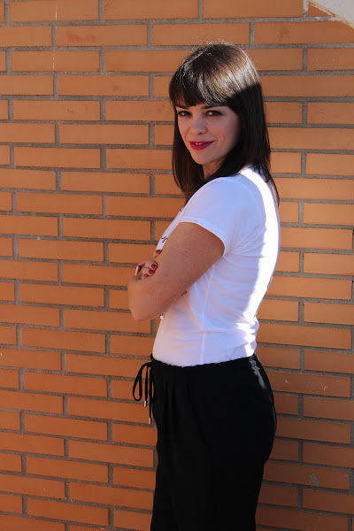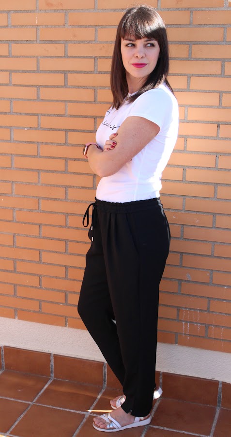 Para esta ocasión he elegido estos pantalones básicos de Zara de primavera-verano (pero los míos son ya de hace dos o tres temporadas), son de tela súper fresquita, anchitos y me los pongo muchísimo cuando llega esta época del año, porque cuando empieza el calor no soporto los vaqueros ni los pantalones largos pegados, me agobian mucho y necesito ir ligera y fresquita. Para mi la combinación de blanco y negro siempre es un acierto, así que no he arriesgado mucho ;)