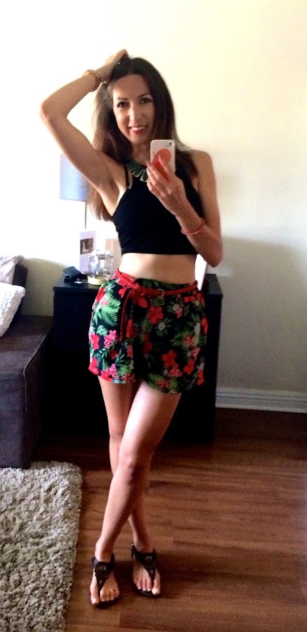 Mango tropical shorts, also here + Seductions crop top + Michael Kors watch + Grendha sandals