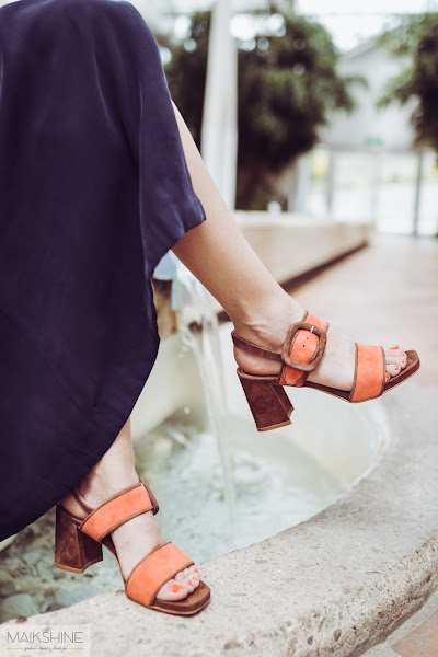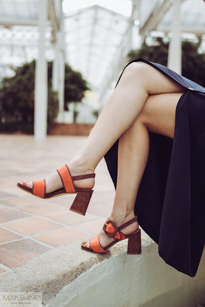 Deciros, que las sandalias han sido el gran descubrimiento de esta temporada ¡No me digáis que no son bonitas! La combinación de colores "coral + marrón" me parece preciosa: el marrón como base en tono tierra para el tacón y ribetes, y el protagonismo se lo lleva el color coral en las tiras ¡IN LVE!