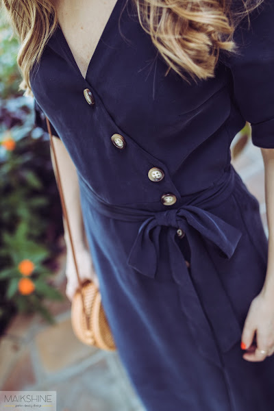 Es un vestido midi cruzado con botones, una de las tendencias de moda de esta temporada, que se ciñe bastante a la cintura y sienta genial. Además, el tejido en lyocell, los botones de las mangas, y el lazo, le dan un toque safari que me encanta ¡Mi debilidad!